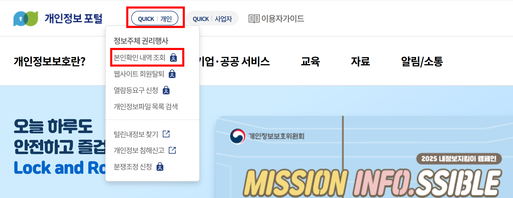 인터넷 이용 중 무분별하게 가입한 웹사이트들, 어디에 가입했는지 기억도 안 나시죠? 개인정보보호위원회가 운영하는 개인정보 포털을 통해 본인확인 내역 기반으로 가입 사이트를 조회하고, 불필요한 사이트에서 한 번에 탈퇴할 수 있습니다.