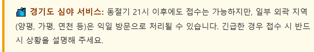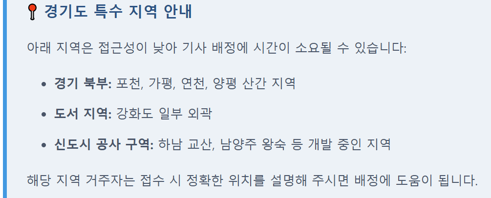 경기도 내 대부분 지역이 동일한 요금이 부과되지만, 접근이 어려운 일부 산간 지역은 추가 요금이 발생할 수 있으니 접수 시 꼭 확인해보시기 바랍니다.