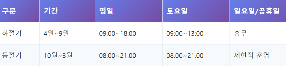 경기도 계절별 서비스 운영 시간