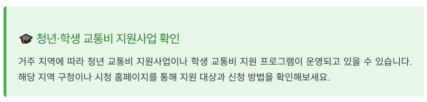 👦 청소년 요금 (교통카드 기준)