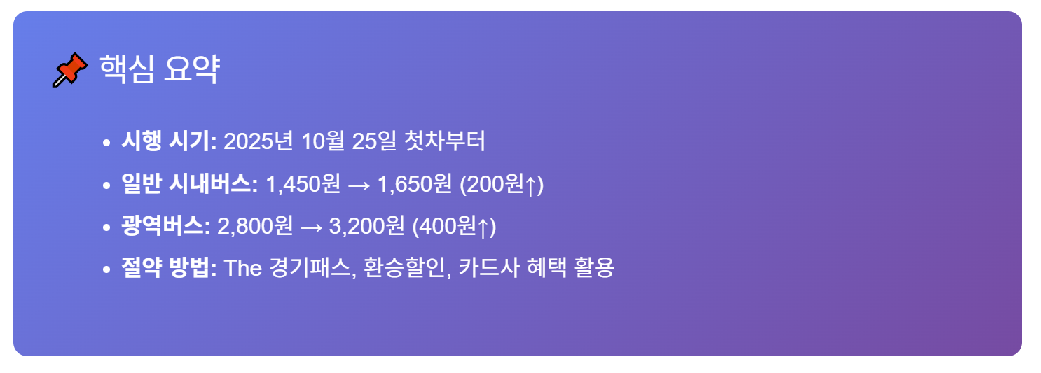 🚌 2025년 10월 25일부터 달라지는 경기도 버스 요금