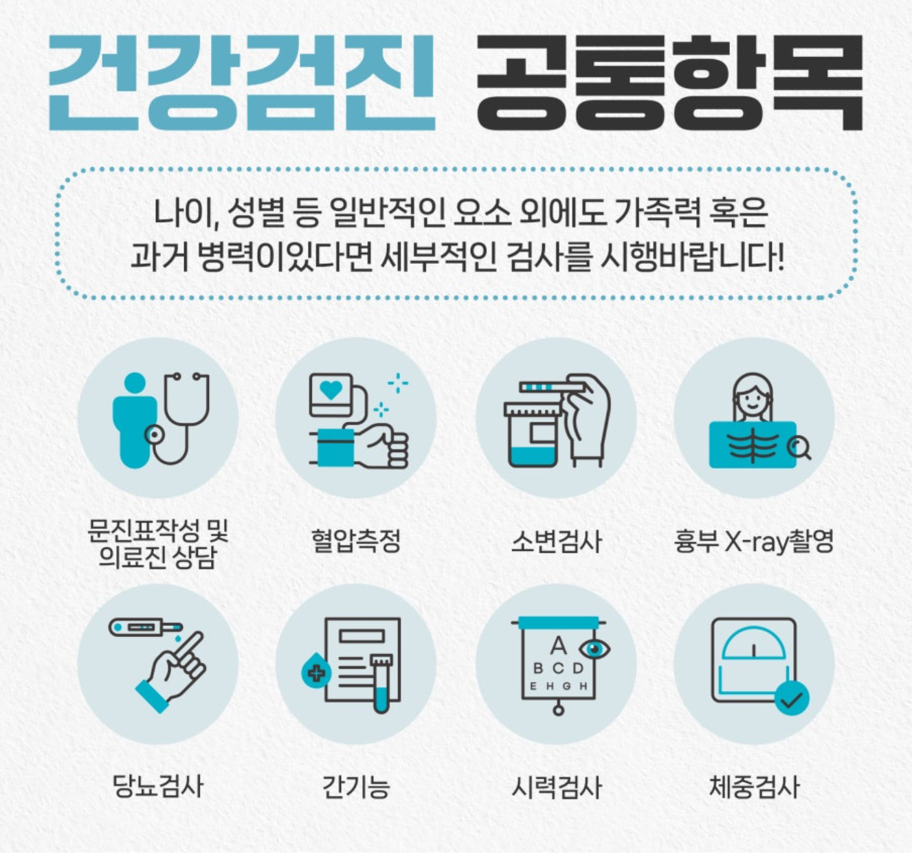 - 각종 국가/지자체 시험, 취업, 진학 등 일부 공공분야에서 건강검진 결과 제출 요구시 불이익이 있을 수 있음.