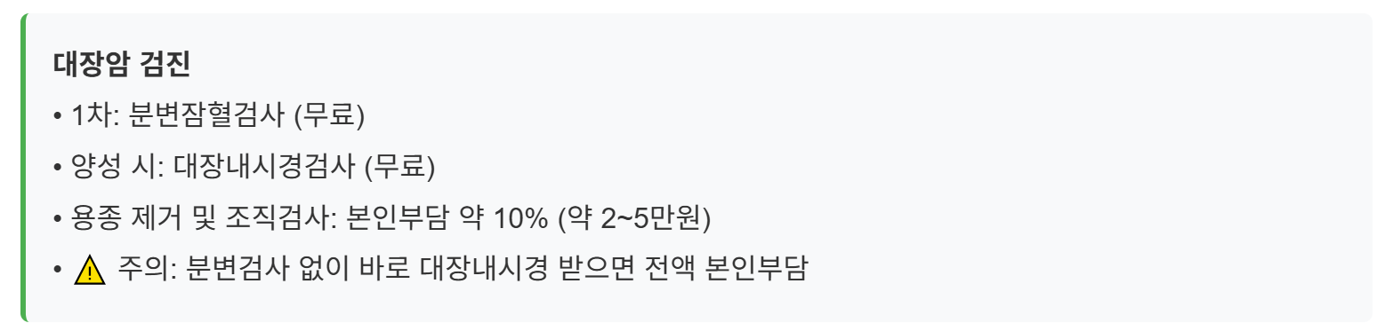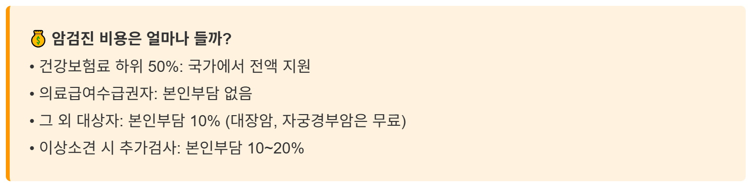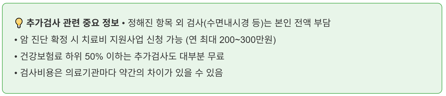 📌 암종별 추가검사 및 비용