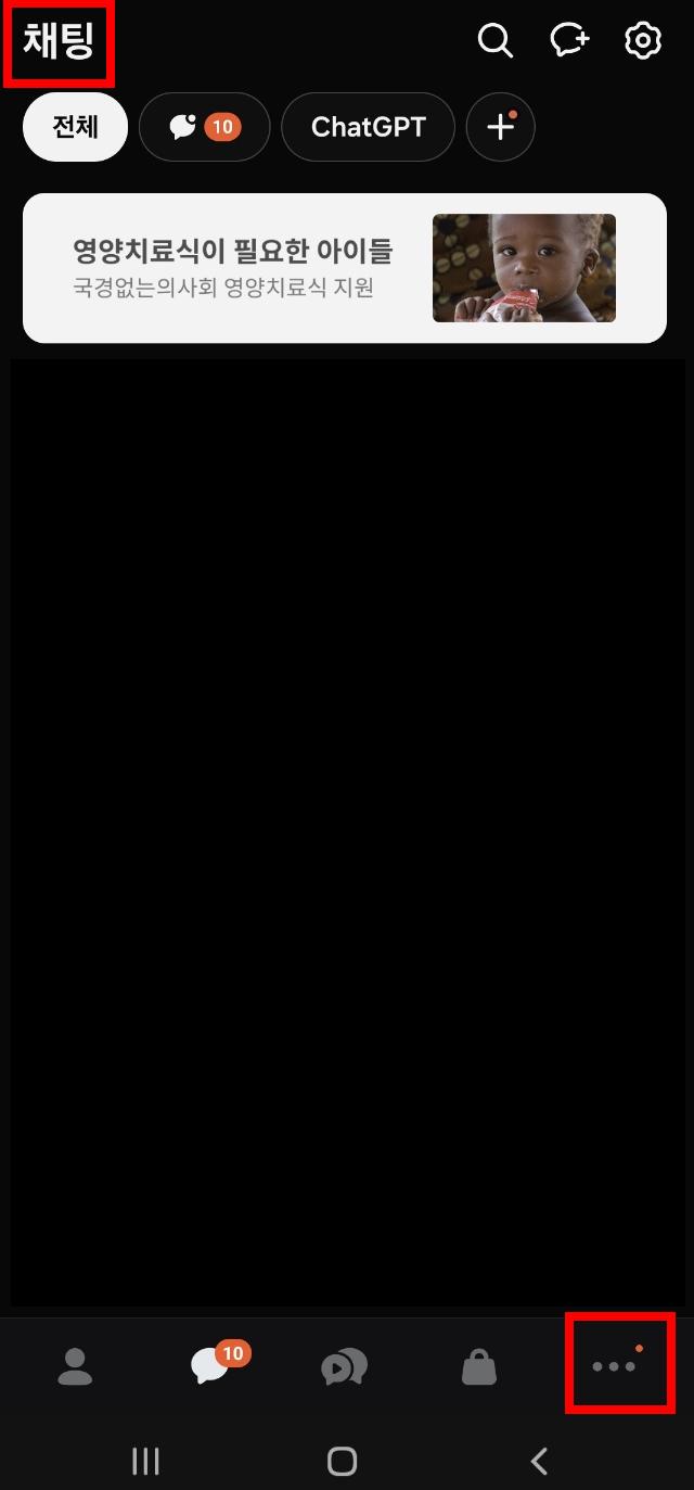 1. 채팅창 : 채팅창 오른쪽 하단의 점 세 개를 클릭합니다.