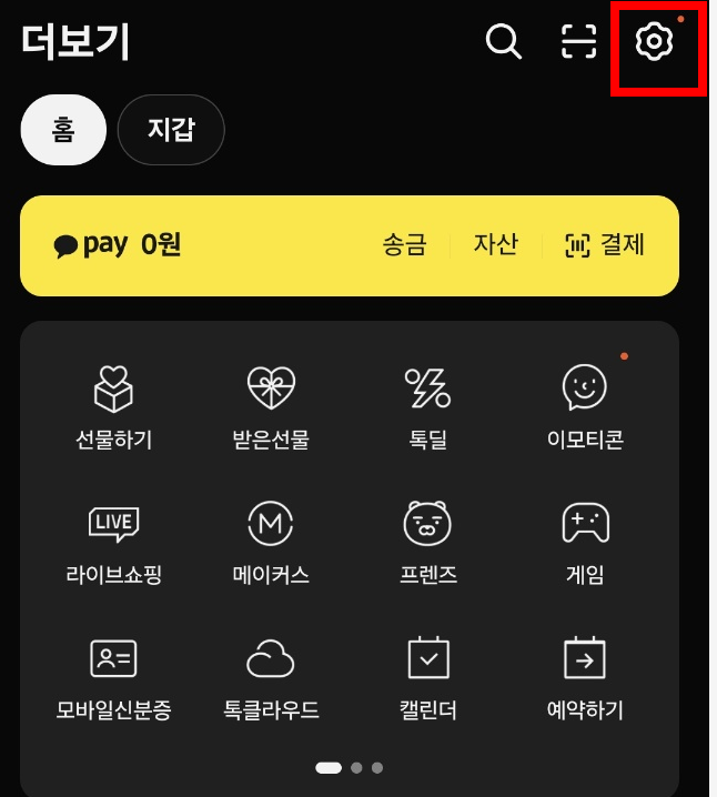 2. 더보기창 오른쪽 상단의 '설정'으로 이동합니다.
