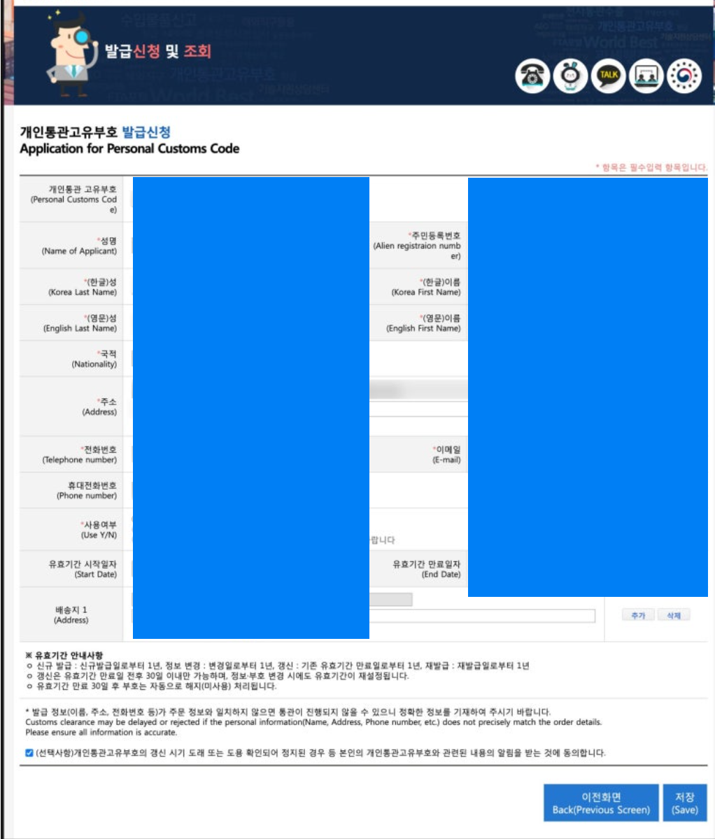 아래 글에서 기존에 사용하던 개인통관번호를 폐기하고 새로 발급(변경) 받는 방법을 간단히 정리해봤습니다.